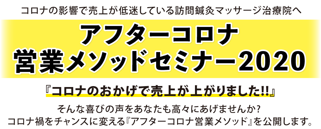 売上がたとえ0になったとしても、このセミナーで話す『アフターコロナ営業メソッド』を活用してもらえれば、これからは介護施設からの新規紹介が増えて、治療ストップしていた患者様も一気に治療再開となり、事業売上は確実にアップします。